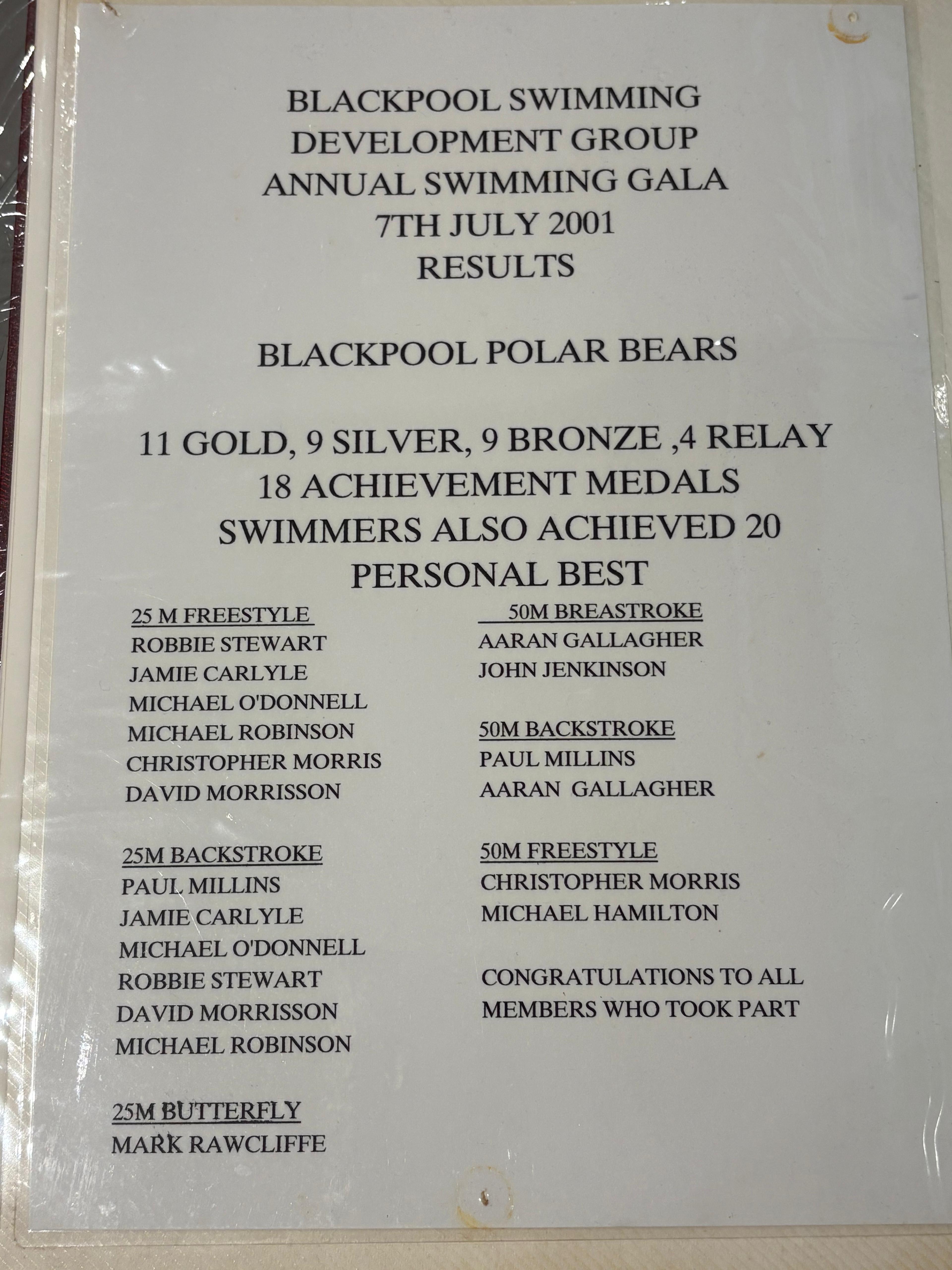 Step into the Blackpool Polar Bears Awards & Competitions Gallery and celebrate the incredible achievements of our swimmers at every level, from local meets to national and Special Olympics events. This collection showcases the dedication, talent, and perseverance of our athletes as they proudly display their gold, silver, and bronze medals, alongside an array of trophies and special awards. Whether it's the thrill of a podium finish at a NASCH competition, the unforgettable moments of triumph at a Special Olympics event, or the personal victories at regional and club galas, each image tells a story of determination, teamwork, and celebration. Beyond the medals, you’ll see the joy of achievement, the camaraderie among swimmers, and the unwavering support of coaches, carers, and volunteers who make every success possible. Explore the gallery and experience the spirit of competition, inclusion, and the unbreakable bonds that define Blackpool Polar Bears.